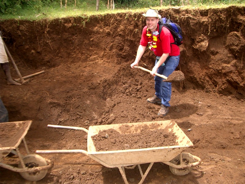 This is me, Brian, contributing a few shovels of help to the great task ahead. The digging and construction is all done manually, which additionally assists local employment. |
